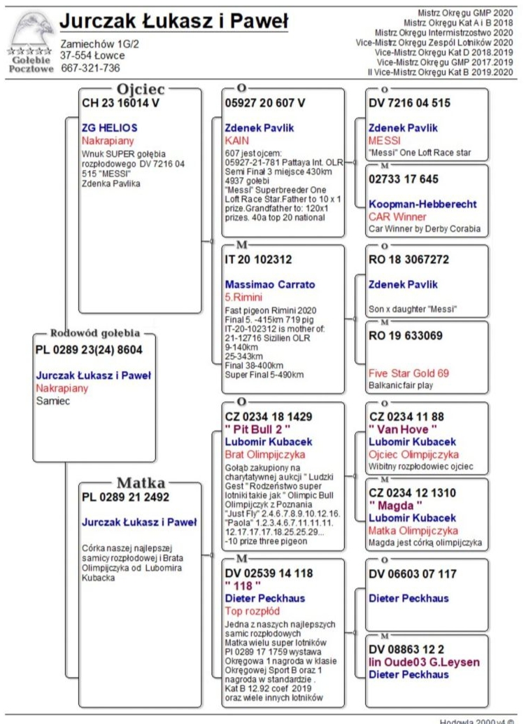 Oryginalny gołąb z hodowli Jurczak Łukasz i Paweł. Szczegóły pochodzenia w rodowodzie. Więcej informacji pod nr tel.: 507 805 142 *koszt wysyłki po stronie kupującego