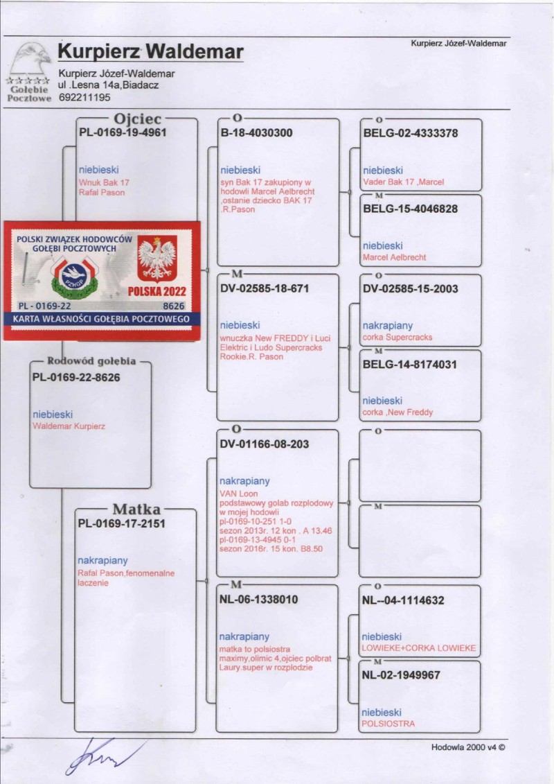 PL-0169-22-8626 wnuczek ostatniego syna Baka 17 Marcel Aelbrecht i 203 van Loon Rafała Pasonia