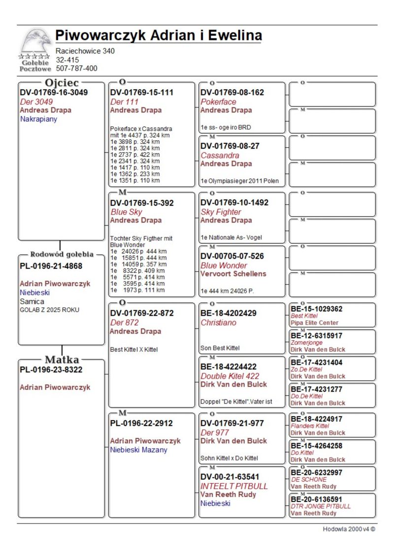 Więcej informacji w rodowodzie lub pod nr tel 507787400