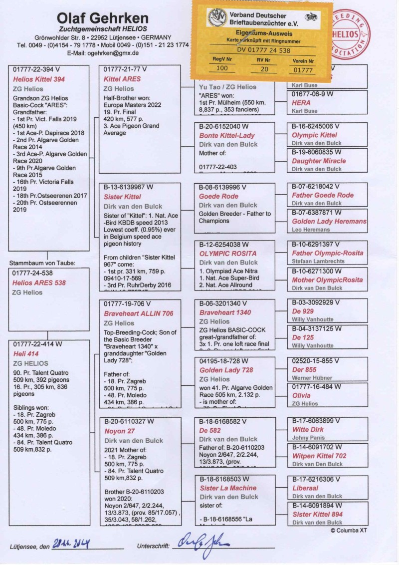Płeć: młody gołąb Hodowca - rasa: oryg. Waldemar Kwissa Zakończenie: 18.12.2025 godz. 19:52