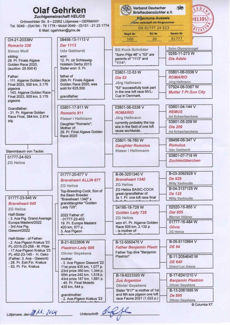Oryginalny gołąb z hodowli Waldemar Kwissa. Fajne połączenie. Szczegóły pochodzenia w rodowodzie, karty własności będą dołączone do rodowodów. Więcej informacji pod nr tel.: 693552011. Koszt wysyłki od 1 do 4 szt 150 zł