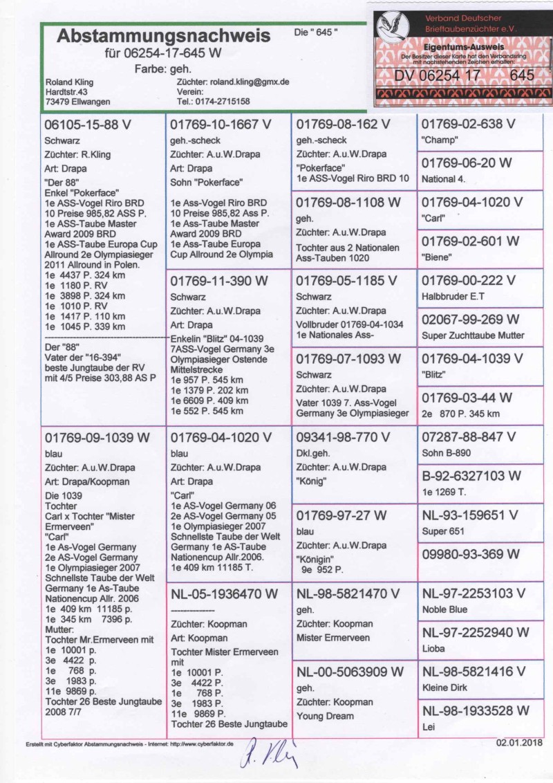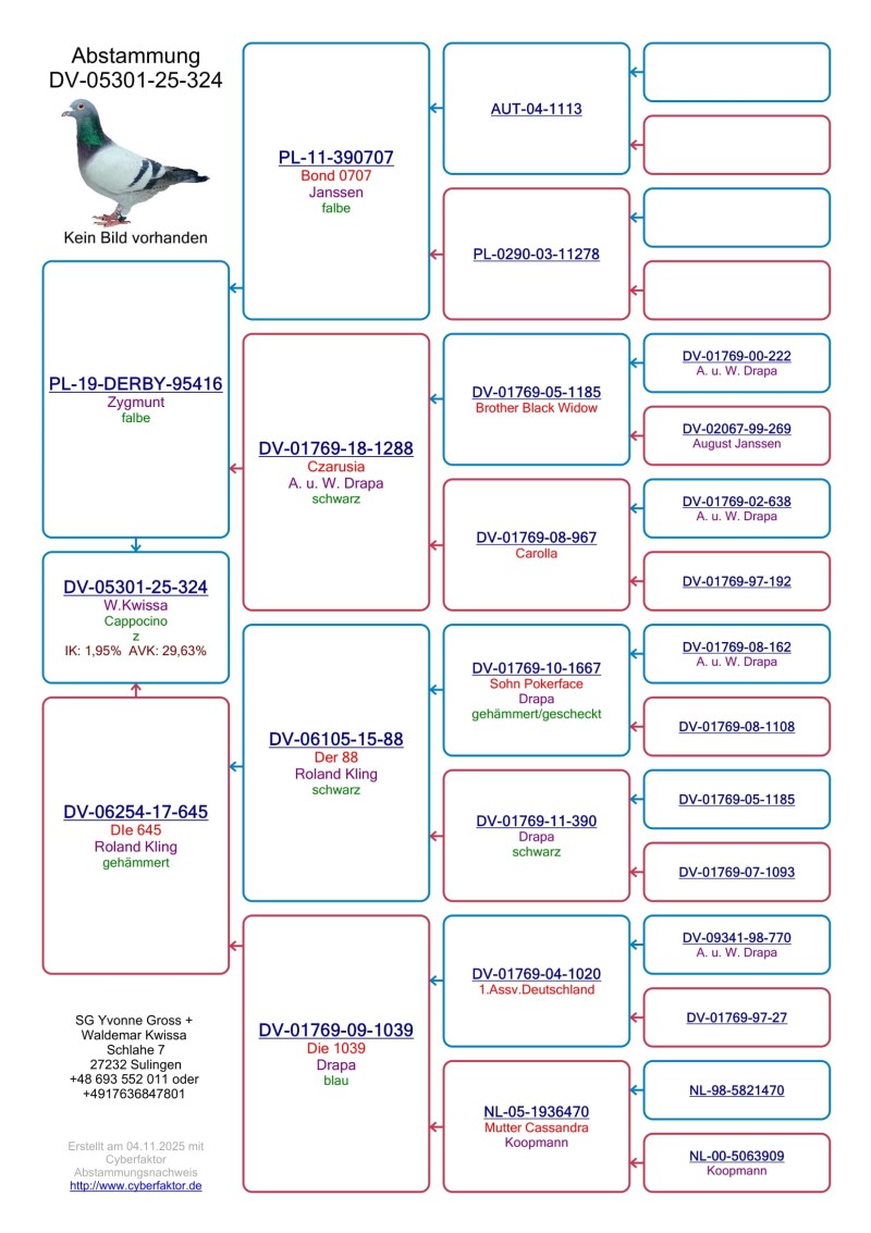 Oryginalny gołąb z hodowli Waldemar Kwissa. Fajne połączenie. Szczegóły pochodzenia w rodowodzie, karty własności będą dołączone do rodowodów. Więcej informacji pod nr tel.: 693552011. Koszt wysyłki od 1 do 4 szt 150 zł