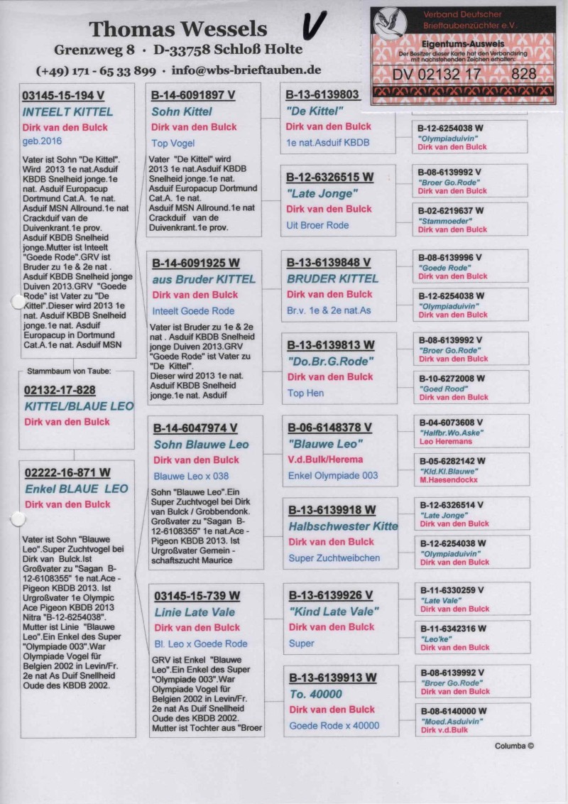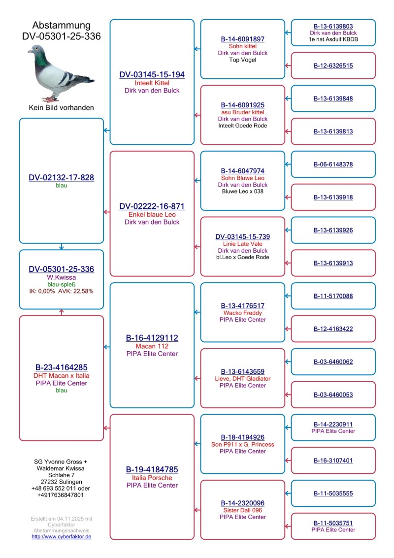 Oryginalny gołąb z hodowli Waldemar Kwissa. Fajne połączenie. Szczegóły pochodzenia w rodowodzie, karty własności będą dołączone do rodowodów. Więcej informacji pod nr tel.: 693552011. Koszt wysyłki od 1 do 4 szt 150 zł