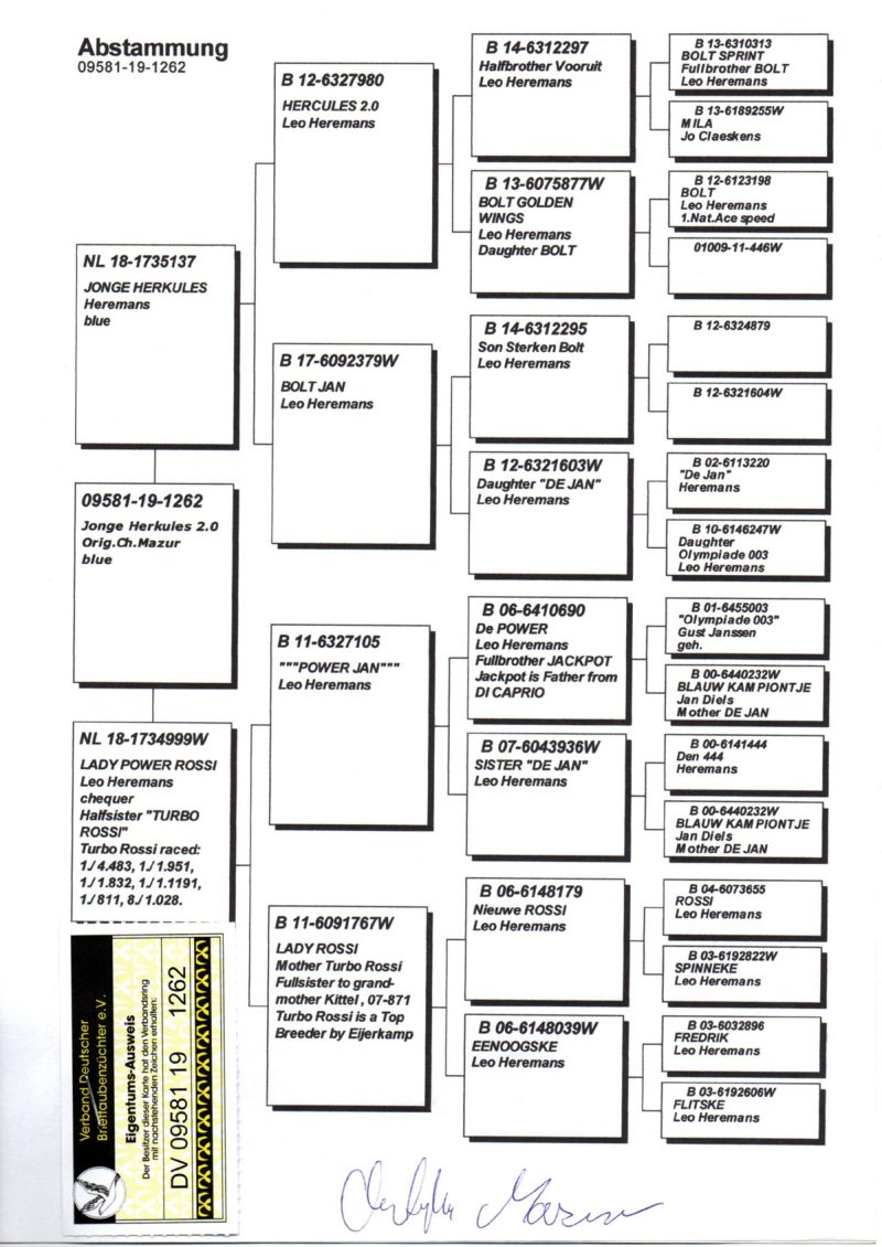 DV-09581-19-1262 - 100% Leo Heremans - Prawnuk DE POWER - Pełny Brat JACKPOT