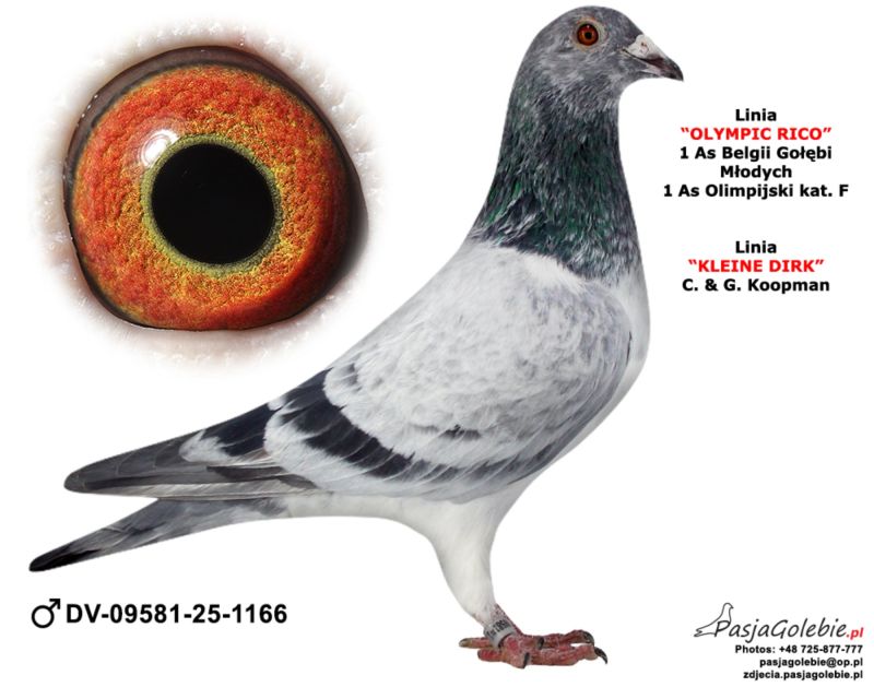 Szczegóły pochodzenia w rodowodzie oraz na opisanym zdjęciu gołębia.