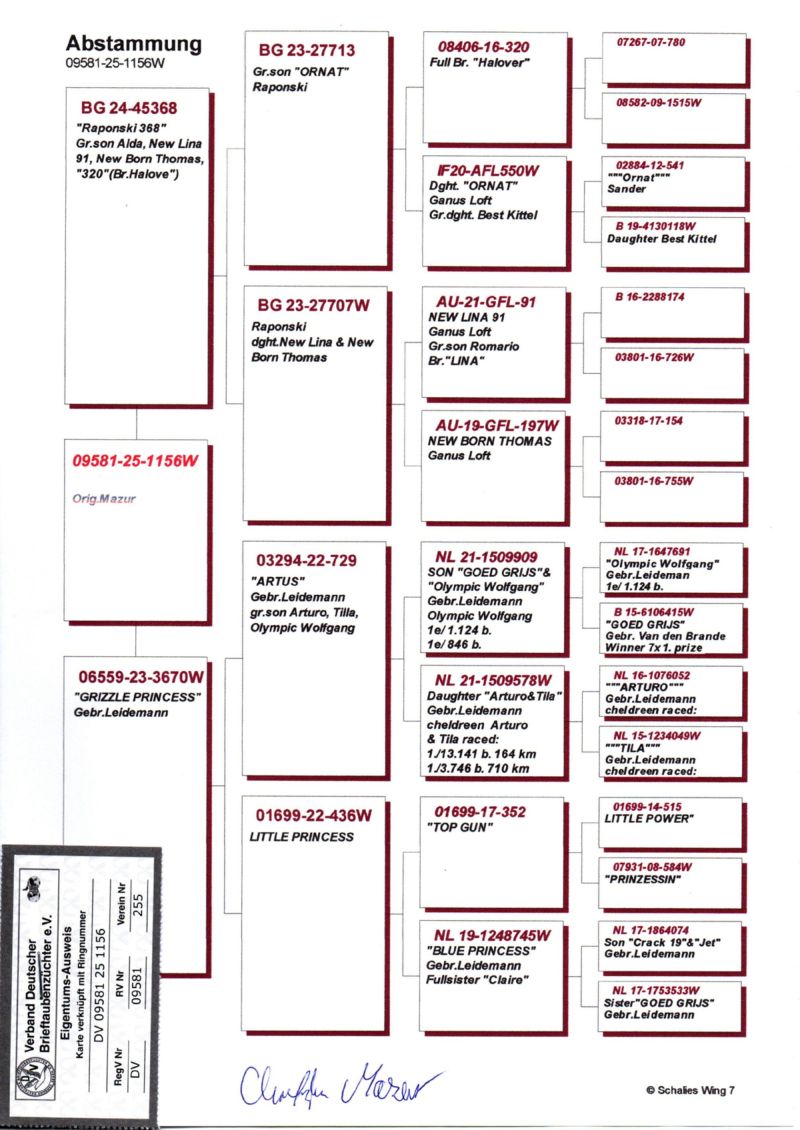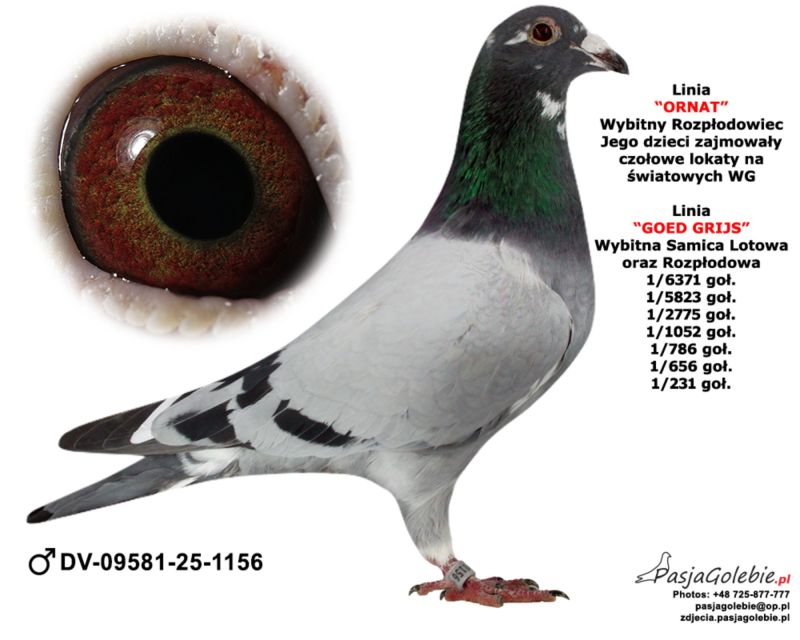 Szczegóły pochodzenia w rodowodzie oraz na opisanym zdjęciu gołębia.