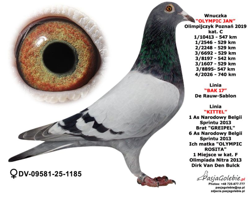 DV-09581-25-1185 - Wnuczka Inbred OLYMPIC JAN - Olimpijczyk kat. C Poznań 2019 - Linia BAK 17 De Rauw-Sablon