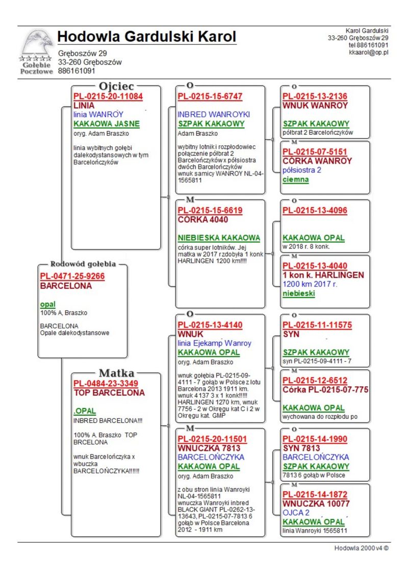 Oryginalny gołąb z hodowli Karola Gardulskiego. Moje gołębie super sprawdzają się w wielu hodowlach i przyczyniły się do zdobycia wielu mistrzostw. Oryginalna samica z mojej hodowli została też gołębiem olimpijskim. W razie pytań, proszę o sms. Koszt wysyłki od 1 do 4 szt. 160 zł.