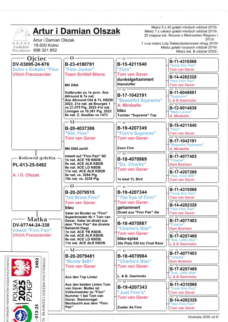 PL-013-25-5492 wnuk Finna x wnuczka brata Finna Tom van Gaver KUP TERAZ