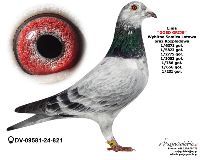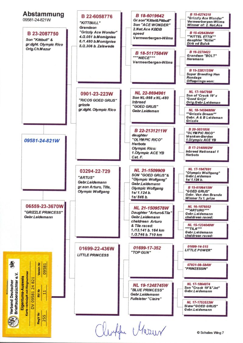 Szczegóły pochodzenia w rodowodzie oraz na opisanym zdjęciu gołębia.