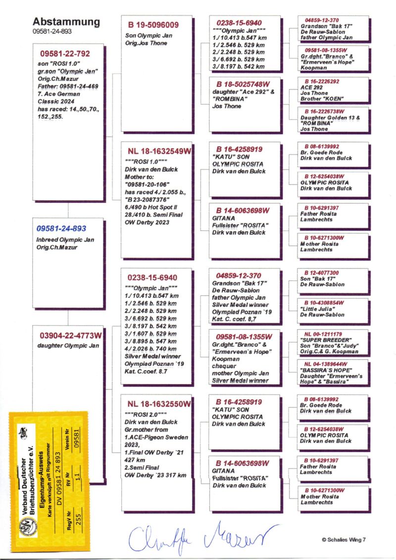 DV-09581-24-893 - Wnuk Inbred OLYMPIC JAN - Olimpijczyk kat. C Poznań 2019 - Linia BAK 17 De Rauw-Sablon