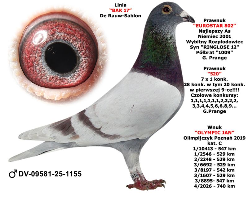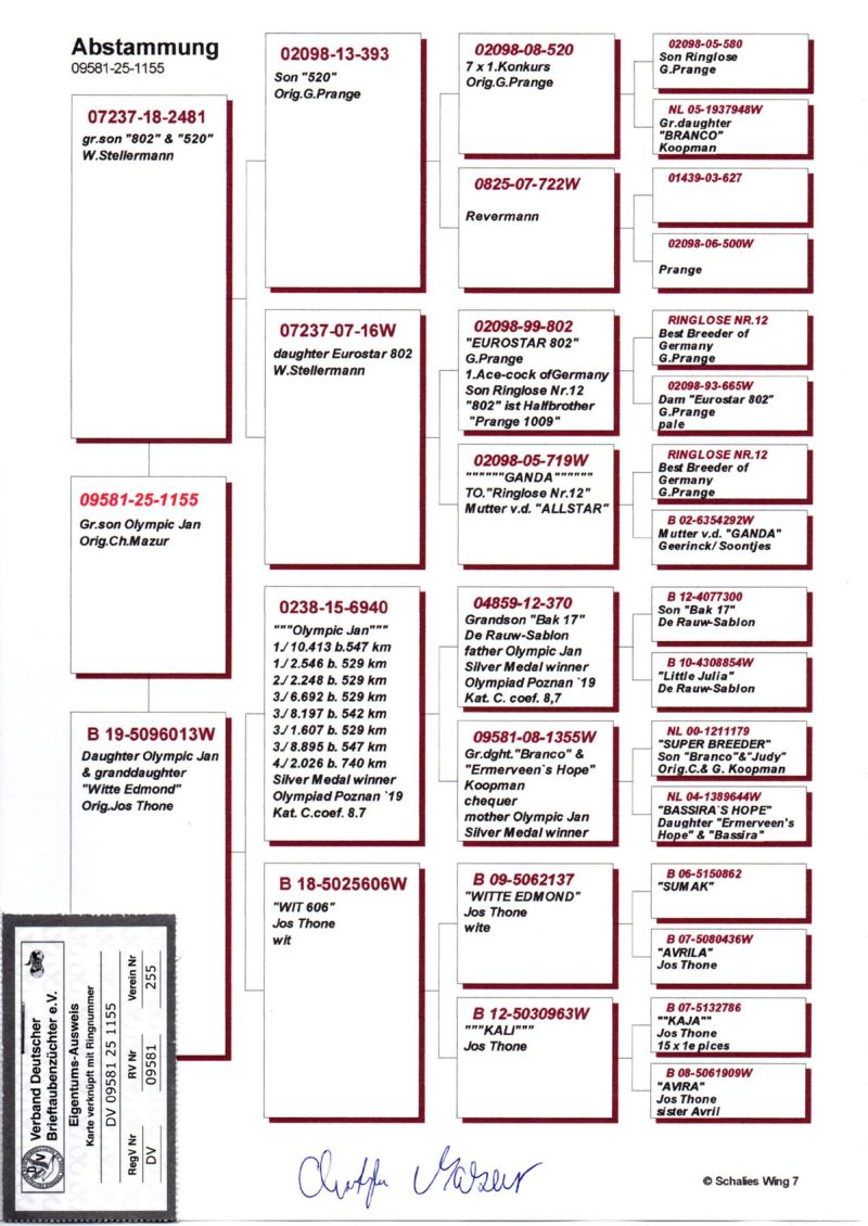 Szczegóły pochodzenia w rodowodzie oraz na opisanym zdjęciu gołębia.