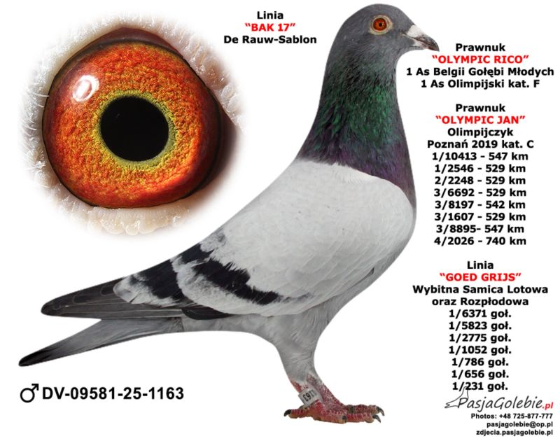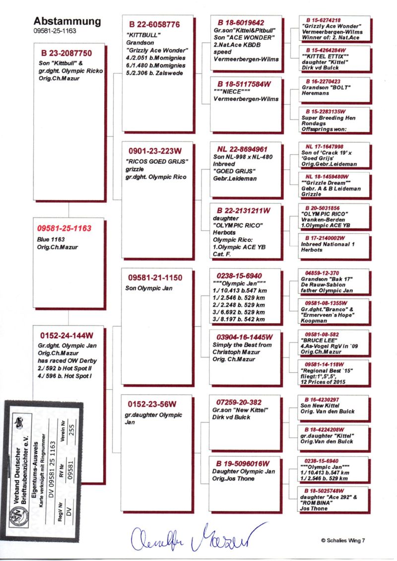 Szczegóły pochodzenia w rodowodzie oraz na opisanym zdjęciu gołębia.