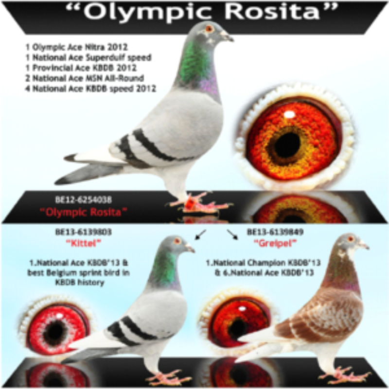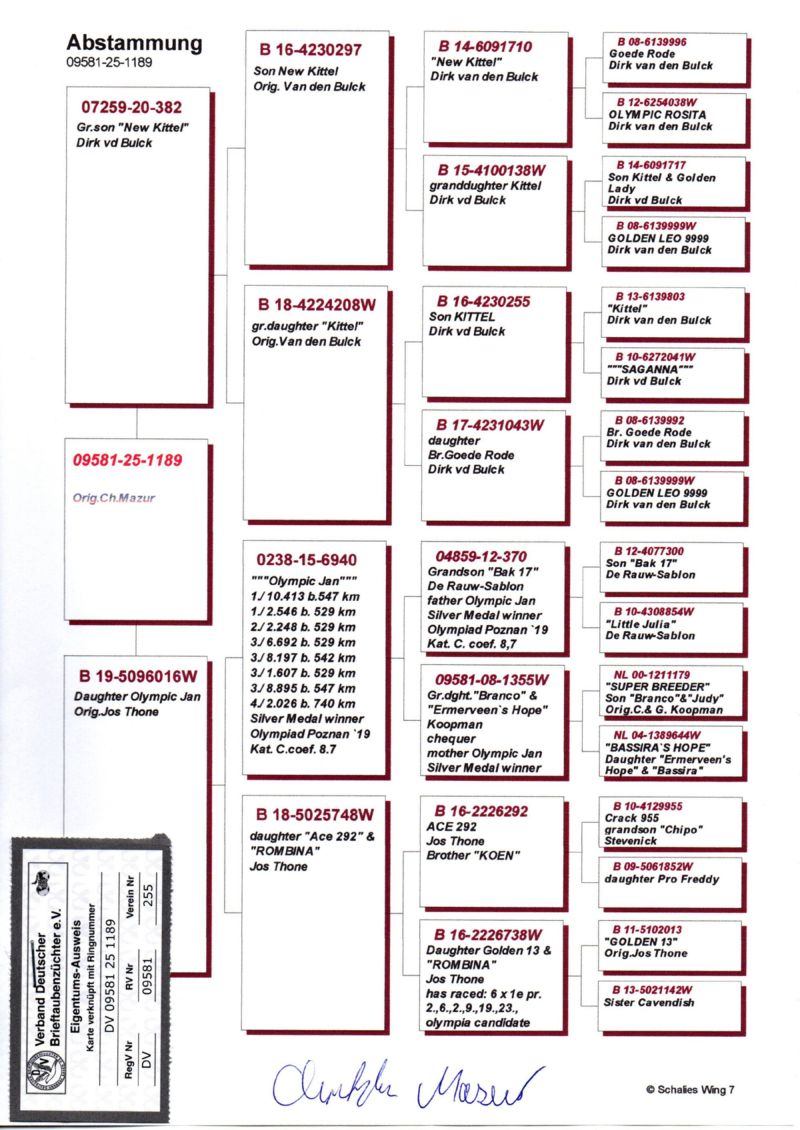 Szczegóły pochodzenia w rodowodzie oraz na opisanym zdjęciu gołębia.
