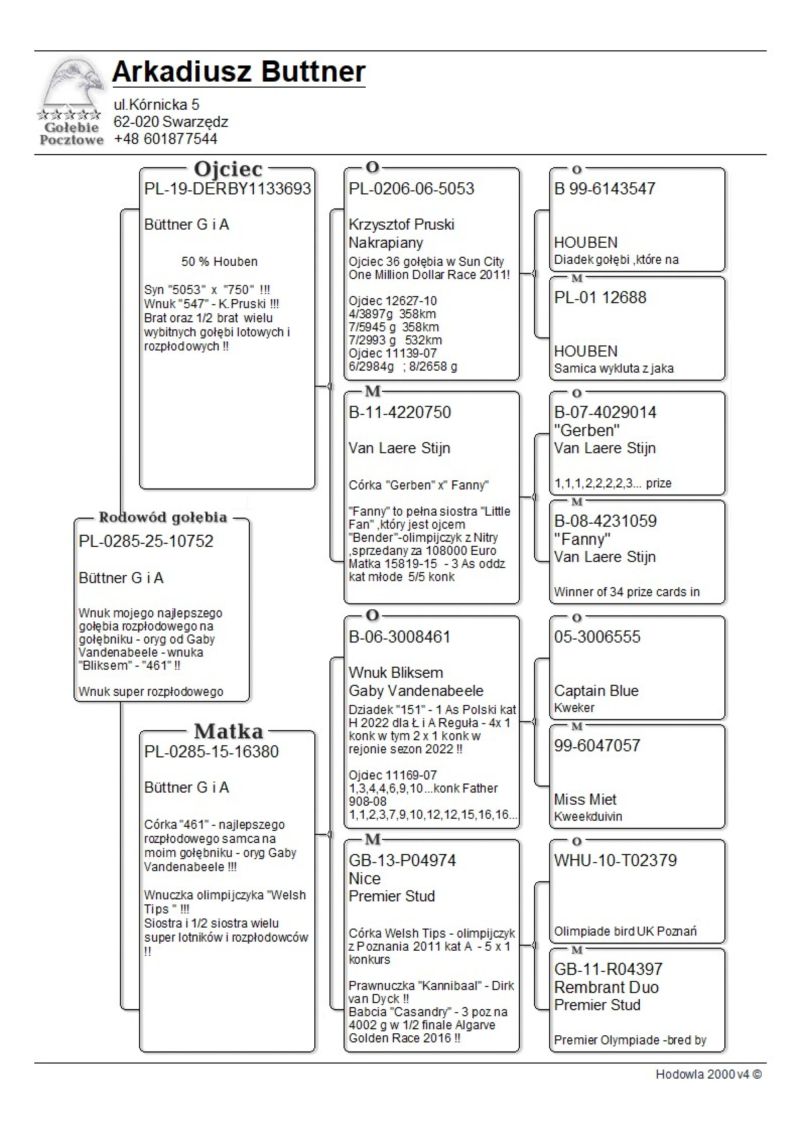 Został też 4 Asem Polski kat krótki dystans 2024 z coeff 17 z groszem z 5 lotów do kat A właśnie dla Kolegi Jacka Orszulika !!! oraz wiele,wiele innych.....od 2017 roku 30x mistrzostwo oddz w różnych kategoriach w tym 2019-2021 3 x z rzędu supermistrzostwo oddziału Poznań, więcej info 601 877 544