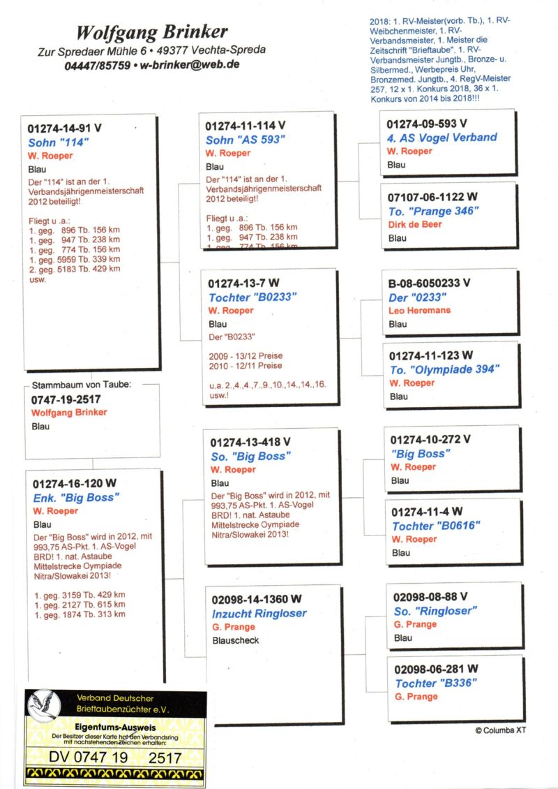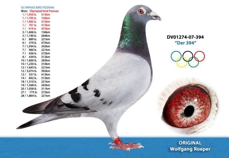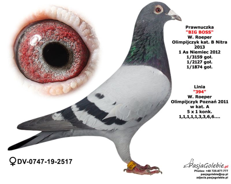 Szczegóły pochodzenia w rodowodzie oraz na opisanym zdjęciu gołębia.