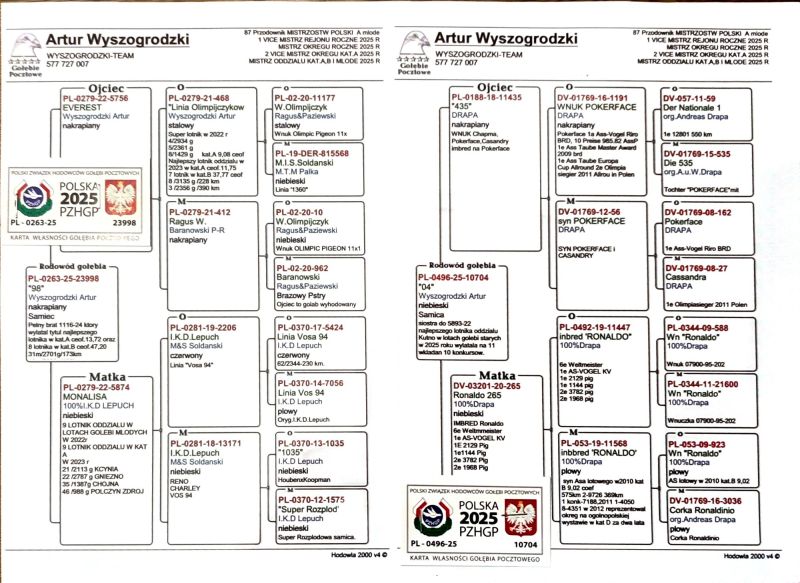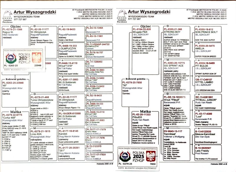 PAKIET DO ROZPŁODU WYSZOGRODZKI TEAM - 4 SZTUKI *** WIĘCEJ INFORMACJI W RODOWODACH I POD NUMEREM TELEFONU 577-727-007 ARTUR *** PO WYLICYTOWANIU WPŁATA NA KONTO BANKOWE *** WYSYŁKA KURIEREM, KOSZT 150 ZŁ *** SUPER SEZON W 2025 ROKU !!! *** PTAKI NASZE ZDOBYŁY * MISTRZ ODDZIAŁU KAT A, MISTRZ ODDZIAŁU KAT B, MISTRZ ODDZIAŁU MŁODYCH OPEN, MISTRZ ODDZIAŁU MŁODYCH GMP, MISTRZ ODDZIAŁU MŁODYCH TYPOWANE 5/15 *** MISTRZ OKREGU ROCZNE, 1 VICE MISTRZ OKREGU KAT A, 5 KAT B, 6 KAT D *** 1 VICE MISTRZ OKREGU MŁODYCH KAT A, 1 VICE MISTRZ REGION 1 ŁÓDŹ ROCZNE *** 87 PRZEWODNIK POLSKI MŁODYCH KAT A !!! **"