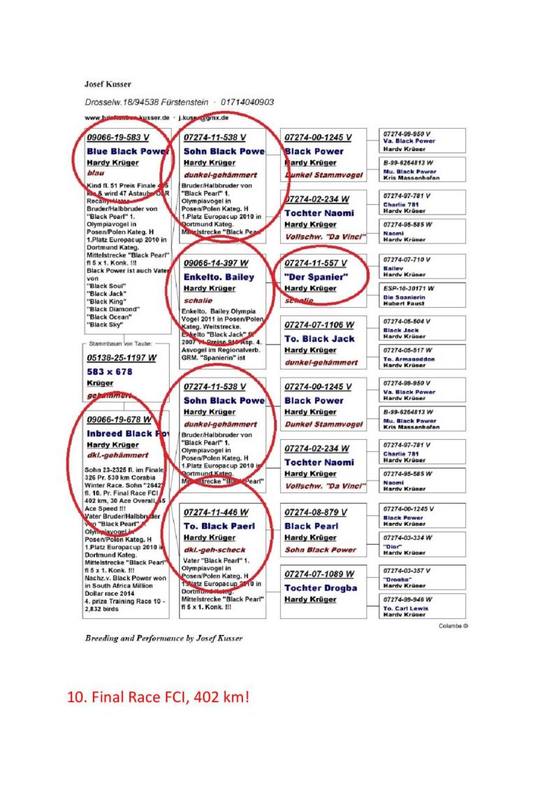 Młody samczyk oryg.F.Peitz której ojcem jest nr45 wybitny lotnik ktory zd:1;1;2;3;6;6;6;6 kon.matka to 446 wnuczka Black Power