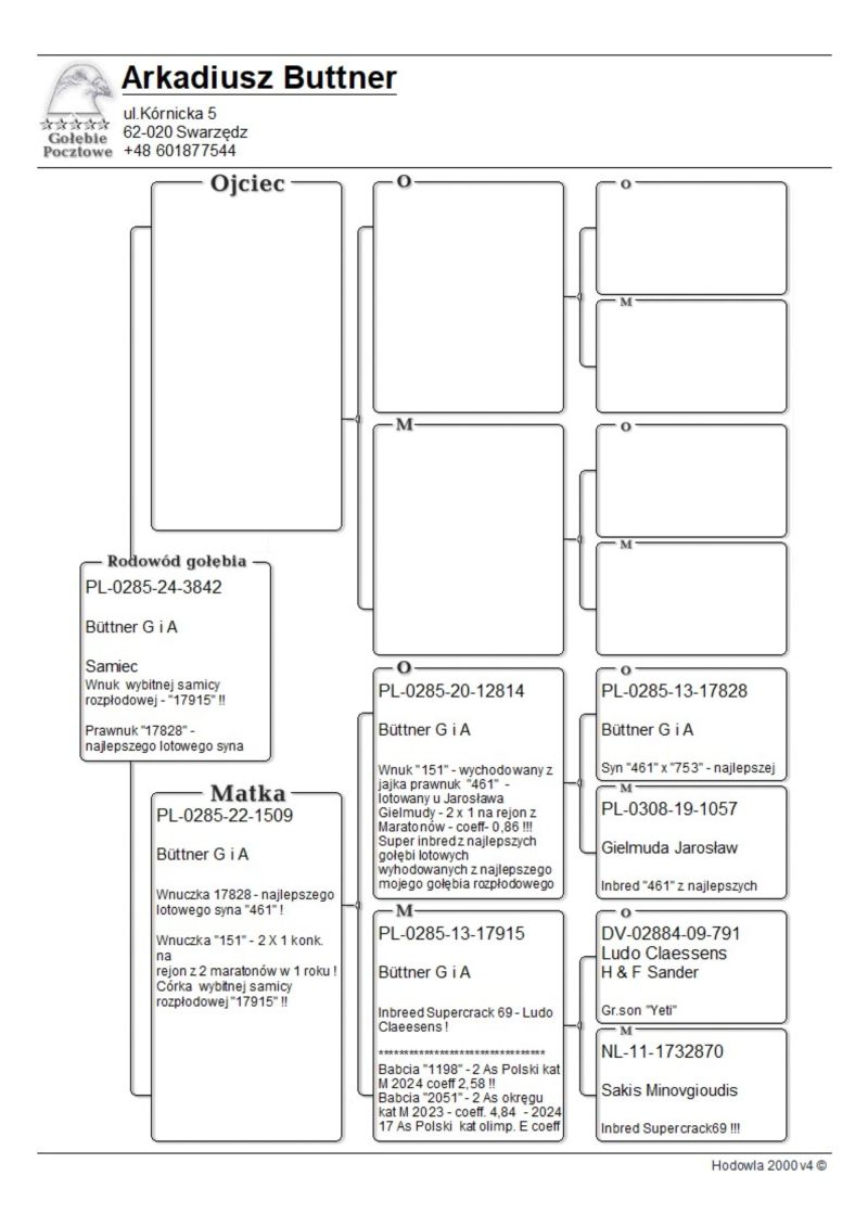 PL-0285-24-3842 Büttner G i A WNUK WYBITNEJ SAMICY ROZPŁODOWEJ 17915 , LINIA 461 ORAZ MEEUWKE 12 - LUDO CLAESSENS