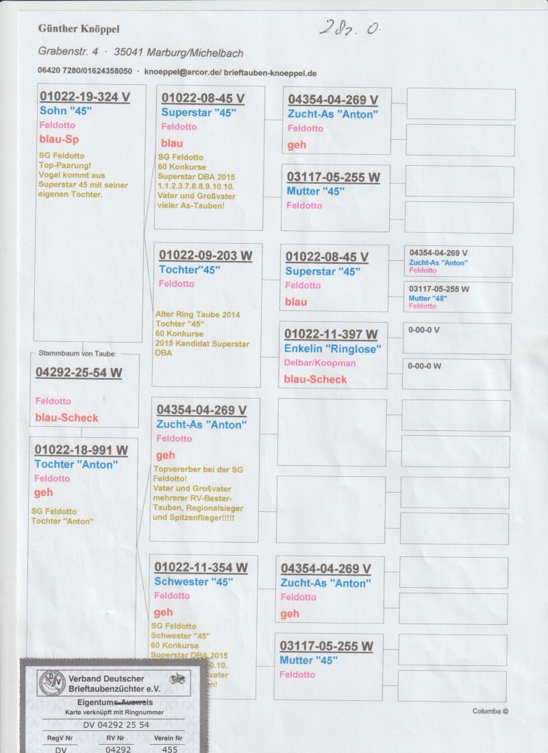 Młoda "śliczna"samica org.G.Knoeppel w 100% Feldotto z połączenia wnuk x córka Antona 269 którego potomstwo,wnuki,prawnuki zdobyło ponad 300x 1 kon.koszt wysyłki 150 zł(1-3szt)