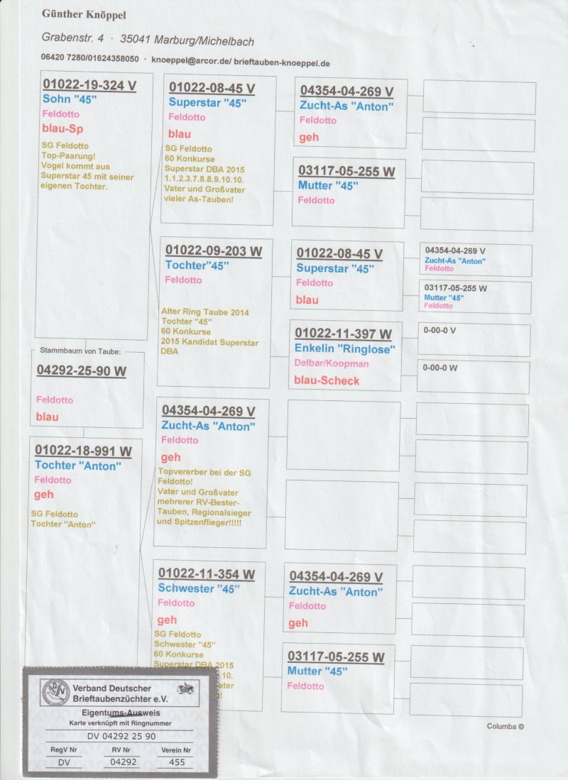 Młoda samica oryg.Gunther Knoeppel 100% Feldotto z połączenia wnuk x córka Antona 269 którego potomstwo, wnuki, prawnuki zd.ponad 300x1kon.koszt wysyłki 150 zł(1-3szt)