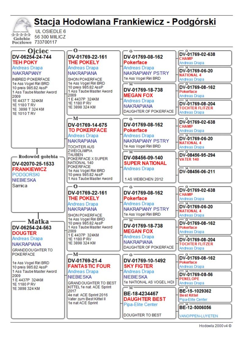 STACJA HODOWLANA-LOTOWA FRANKIEWICZ PODGÓRSKI POSIADA NA SPRZEDAZ MŁODE GOŁEBIE Z GOŁEBNIKA ROZPŁODOWEGO Z GOŁĘBI ANDREAS DRAPA IKD LEPUCH DM PALARSCY B MICHALAK JAN HOOYNAMS J PASZEK PODANA PŁEC JEST ORIENTACYJNA WIECEJ INFORMACJI ZAPEWNIAMY TRANSPORT KOSZT 70ZŁ. PRZY KUP TERAZ DOSTAWA GRATIS DOSTARCZONE BEDA OSOBISCIE POD NUMEREM 733700117 GOŁABIE ZASZCZEPIONE PHA+OSPA TYLKO NA TEJ AUKCJI DOSTAWA GRATIS !!!