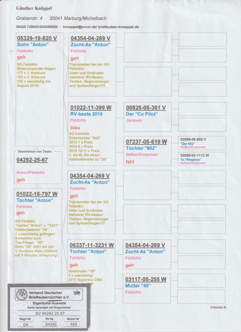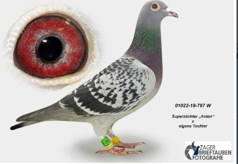 Młody gołąb oryg. Gunther Knoeppel 100% Feldotto z połączenia syn x córka Antona 269,którego potomstwo, wnuki, prawnuki zdobyły ponad 300x 1kon. koszt wysyłki 150 zł(1-3 szt)