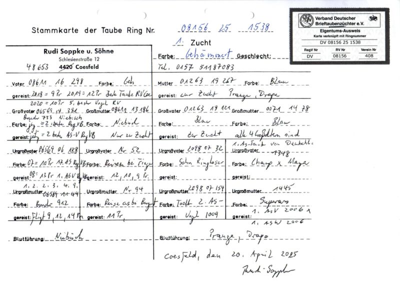 Płeć: młody gołąb Hodowca - rasa: WG Ostwestfalen Derby Zakończenie: 25.12.2025 godz. 21:30