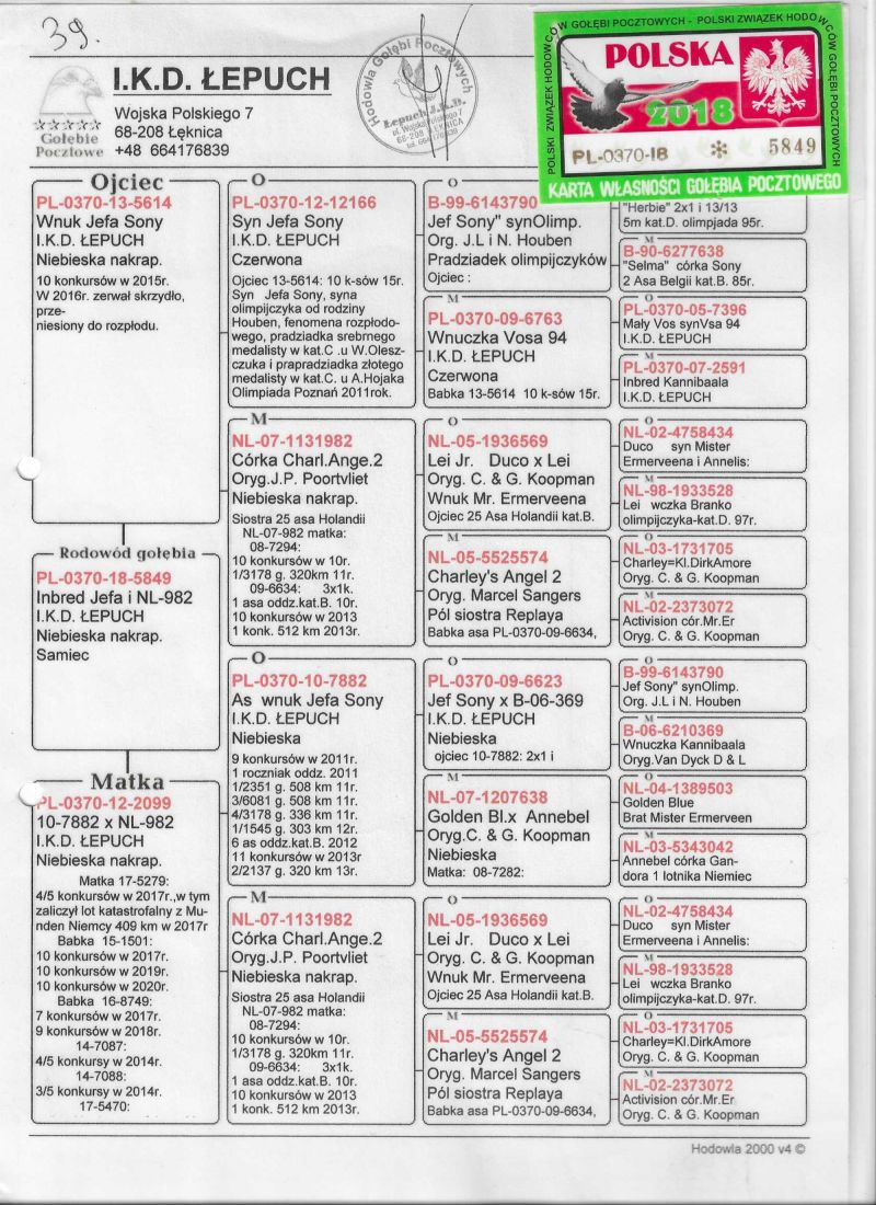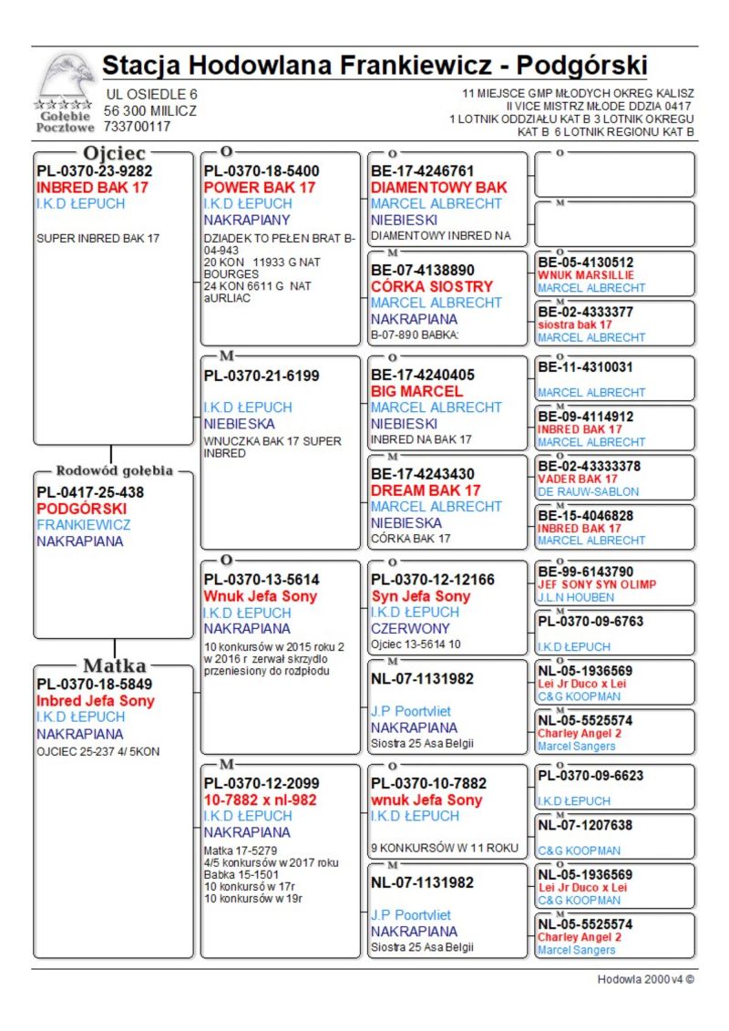 STACJA HODOWLANA-LOTOWA FRANKIEWICZ PODGÓRSKI POSIADA NA SPRZEDAZ MŁODE GOŁEBIE Z GOŁEBNIKA ROZPŁODOWEGO Z GOŁĘBI ANDREAS DRAPA IKD LEPUCH DM PALARSCY B MICHALAK JAN HOOYNAMS J PASZEK PODANA PŁEC JEST ORIENTACYJNA WIECEJ INFORMACJI ZAPEWNIAMY TRANSPORT KOSZT 70ZŁ. PRZY KUP TERAZ DOSTAWA GRATIS DOSTARCZONE BEDA OSOBISCIE POD NUMEREM 733700117 GOŁABIE ZASZCZEPIONE PHA+OSPA TYLKO NA TEJ AUKCJI DOSTAWA GRATIS !!!