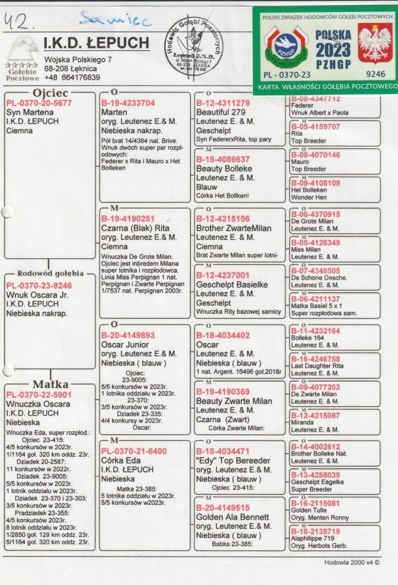 Płeć: samica Hodowca - rasa: FRANKIEWICZ PODGÓRSKI Zakończenie: 20.12.2025 godz. 18:05