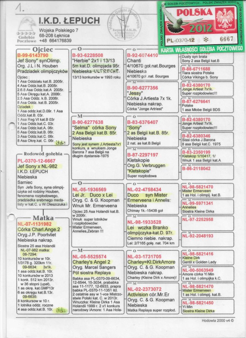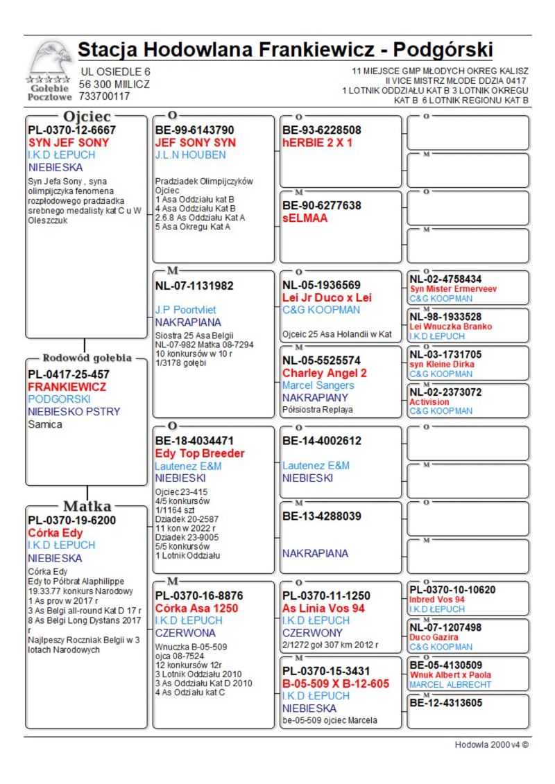 STACJA HODOWLANA-LOTOWA FRANKIEWICZ PODGÓRSKI POSIADA NA SPRZEDAZ MŁODE GOŁEBIE Z GOŁEBNIKA ROZPŁODOWEGO Z GOŁĘBI ANDREAS DRAPA IKD LEPUCH DM PALARSCY B MICHALAK JAN HOOYNAMS J PASZEK PODANA PŁEC JEST ORIENTACYJNA WIECEJ INFORMACJI ZAPEWNIAMY TRANSPORT KOSZT 70ZŁ. PRZY KUP TERAZ DOSTAWA GRATIS DOSTARCZONE BEDA OSOBISCIE POD NUMEREM 733700117 GOŁABIE ZASZCZEPIONE PHA+OSPA TYLKO NA TEJ AUKCJI DOSTAWA GRATIS !!!