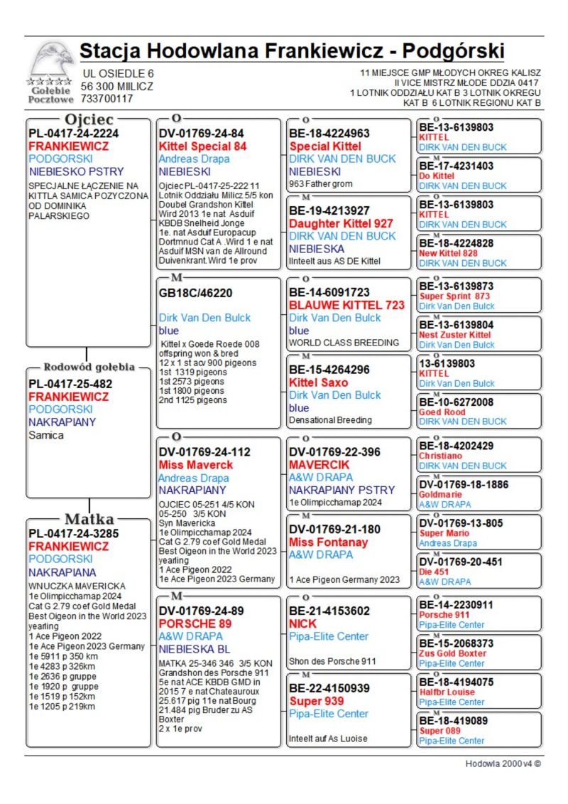 STACJA HODOWLANA-LOTOWA FRANKIEWICZ PODGÓRSKI POSIADA NA SPRZEDAZ MŁODE GOŁEBIE Z GOŁEBNIKA ROZPŁODOWEGO Z GOŁĘBI ANDREAS DRAPA IKD LEPUCH DM PALARSCY B MICHALAK JAN HOOYNAMS J PASZEK PODANA PŁEC JEST ORIENTACYJNA WIECEJ INFORMACJI ZAPEWNIAMY TRANSPORT KOSZT 70ZŁ. PRZY KUP TERAZ DOSTAWA GRATIS DOSTARCZONE BEDA OSOBISCIE POD NUMEREM 733700117 GOŁABIE ZASZCZEPIONE PHA+OSPA TYLKO NA TEJ AUKCJI DOSTAWA GRATIS !!!
