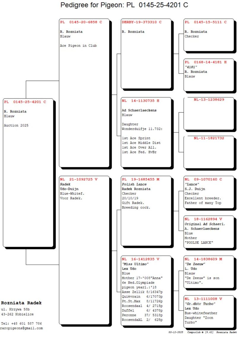 Płeć: młody gołąb Hodowca - rasa: oryg.Radosław Rozniata Zakończenie: 25.12.2025 godz. 19:52