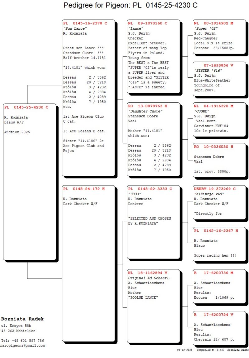 Płeć: młody gołąb Hodowca - rasa: oryg.Radosław Rozniata Zakończenie: 25.12.2025 godz. 19:32