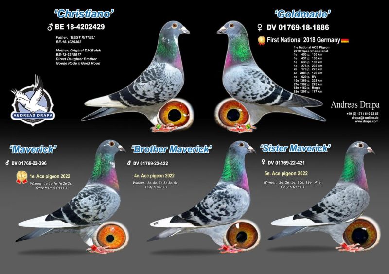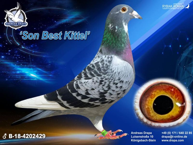 **UWAGA PODBICIE NA TEJ AUKCJI WYNOSI 50 ZŁ** Oryginalny gołąb z hodowli Andreasa Drapy. Szczegóły pochodzenia w rodowodzie. Oferowany gołąb to prawodopodobnie SAMIEC. Gołąb jest własnością Andreasa Drapy i znajduje się już w Polsce u kolegi Roberta Grochowskiego. Gołębia można obejrzeć w Urbanowicach woj. opolskie, po wcześniejszym kontakcie telefonicznym. Sprzedający może zorganizować transport gołębia. Koszt przesyłki do najbliższego większego miasta obok miejscowości kupującego to około 70-100zł. Więcej informacji pod numerem 600133330