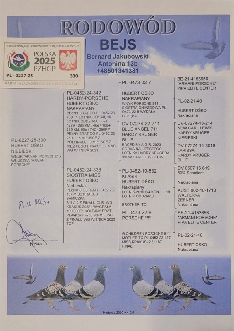 Płeć: młody gołąb Hodowca - rasa: oryg. Bernard Jakubowski Zakończenie: 21.12.2025 godz. 21:04