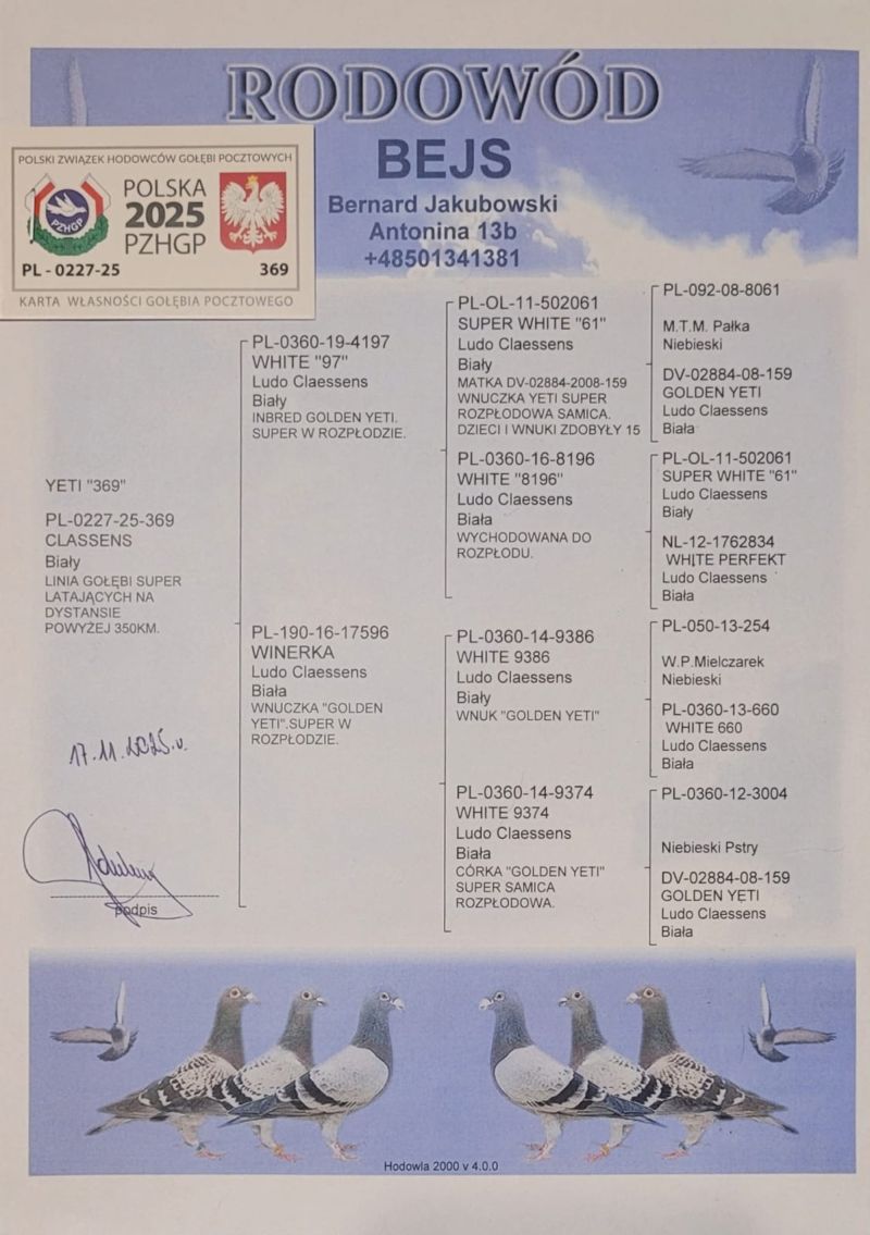 Płeć: młody gołąb Hodowca - rasa: oryg. Bernard Jakubowski Zakończenie: 21.12.2025 godz. 21:20