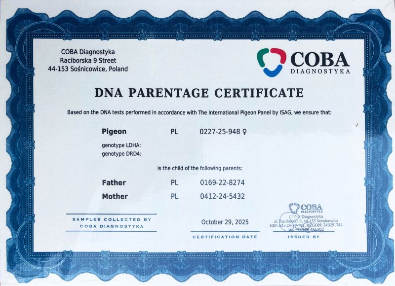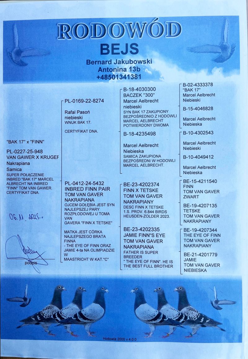 PL-0227-25-948 BAK 17 M.Aelbrecht x FINN T.v.Gaver - certyfikat DNA