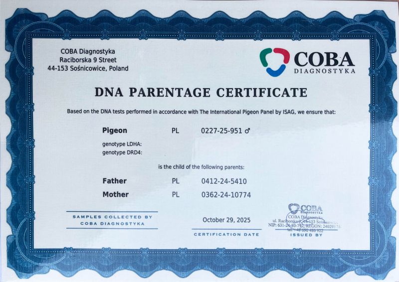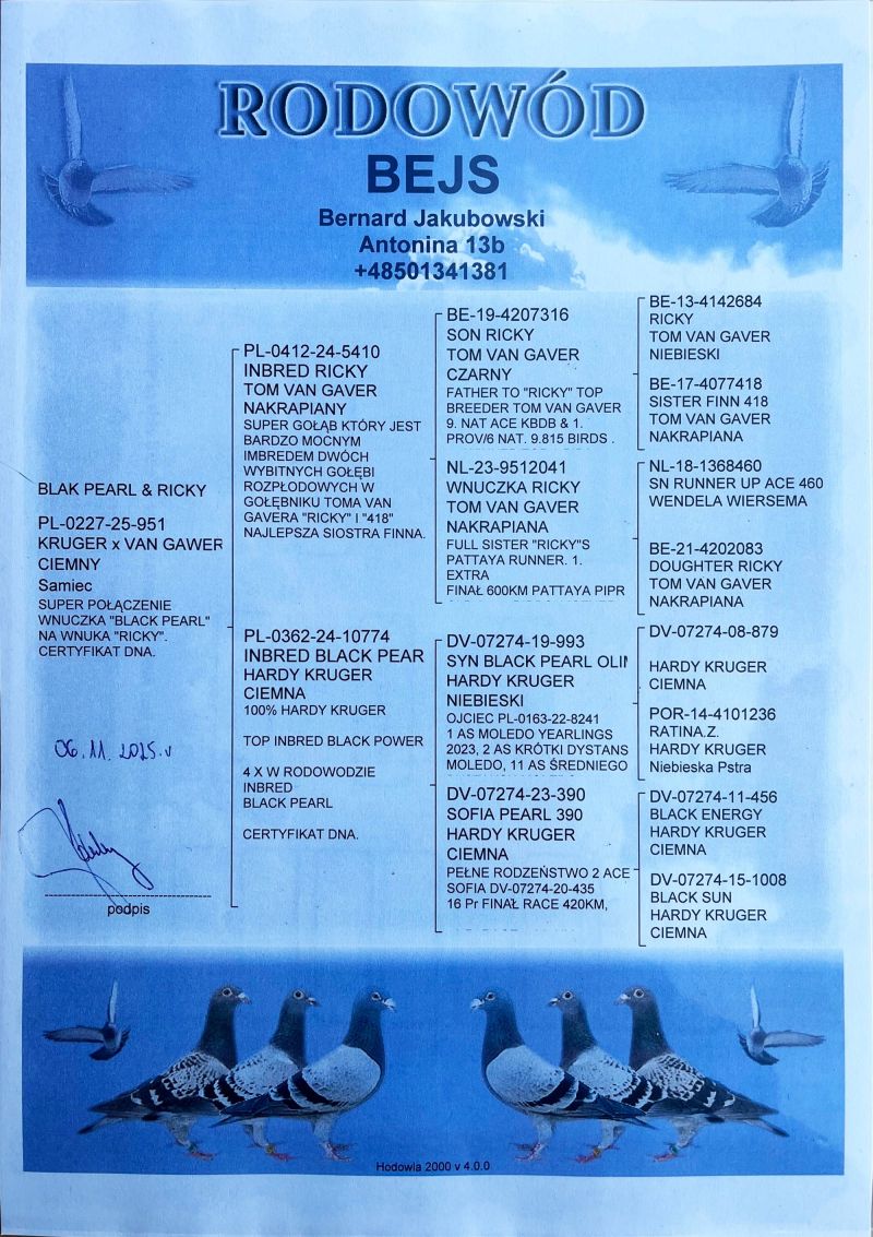 PL-0227-25-951 RICKY T.v.Gaver x BLACK PEARL H.Kruger - certyfikat DNA