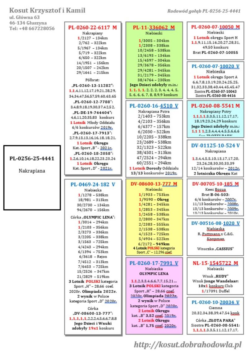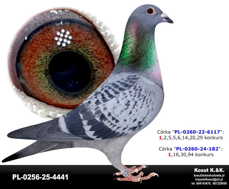 Oryginalny gołąb z hodowli Krzysztof i Kamil Kosut. Szczegóły pochodzenia w rodowodzie. Więcej informacji na stronie www.facebook.com/kosut.dobrahodowla oraz pod nr tel.: 667 228 056. Dostawa gołębi będzie realizowana po zakończeniu aukcji kurierem 165zł lub odbiór osobisty. Możliwy jest także odbiór na wystawie Ogólnopolskiej w Katowicach. Prawdopodobnie *SAMICA*