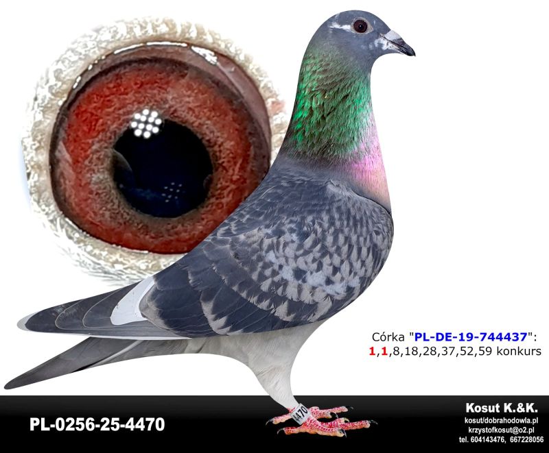 Oryginalny gołąb z hodowli Krzysztof i Kamil Kosut. Szczegóły pochodzenia w rodowodzie. Więcej informacji na stronie www.facebook.com/kosut.dobrahodowla oraz pod nr tel.: 667 228 056. Dostawa gołębi będzie realizowana po zakończeniu aukcji kurierem 165zł lub odbiór osobisty. Możliwy jest także odbiór na wystawie Ogólnopolskiej w Katowicach. Prawdopodobnie *SAMICA*