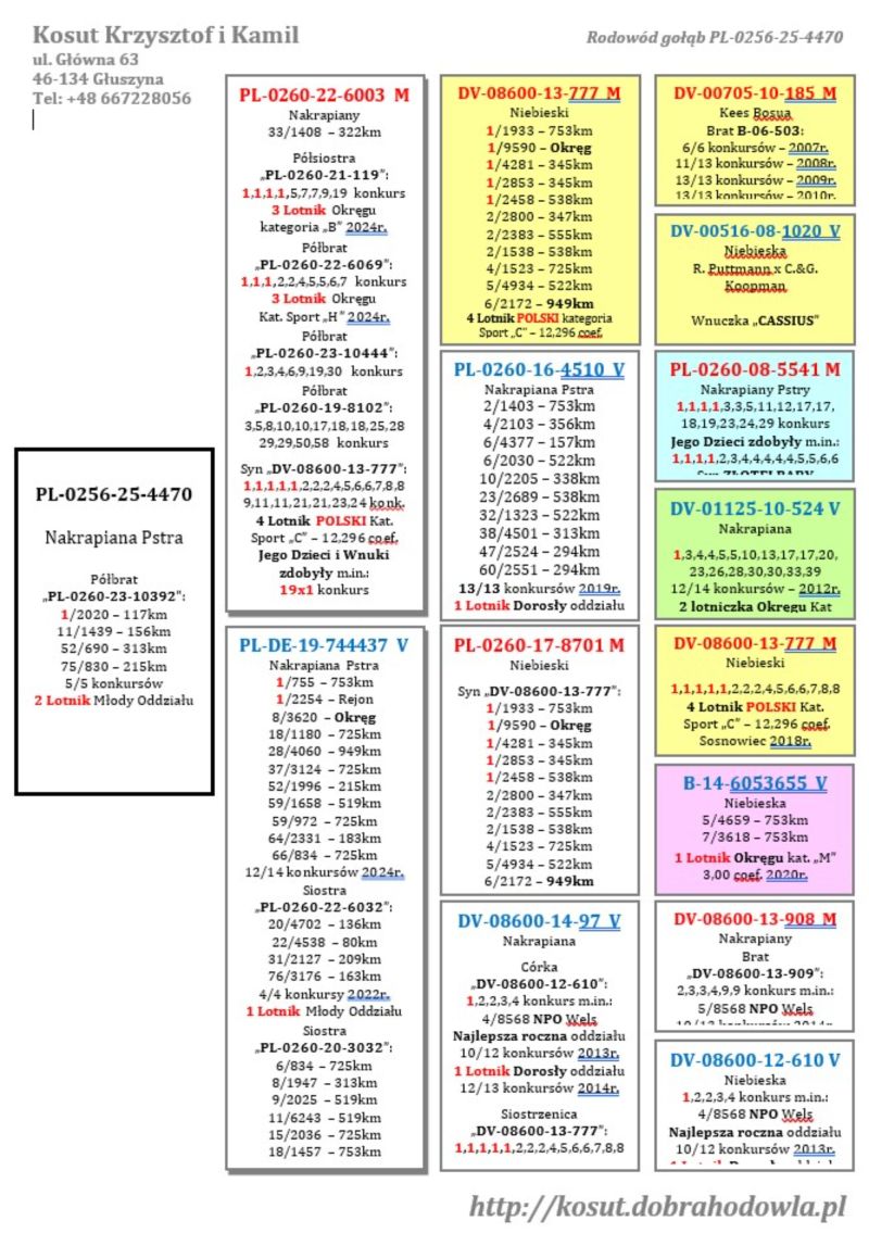 PL-0256-25-4470 – Córka "744437": 1,1,8,18 konkurs Inbred „777” – 1,1,1,1,1 konkurs oryg. Kosut K. & K. 85x1 konkurs!!!