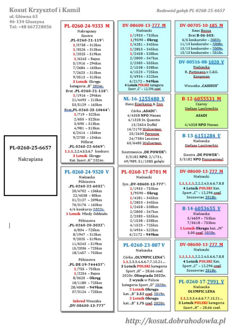 PL-0260-25-6657 – Inbred Wnuczka „777” – 1,1,1,1,1 konkurs 4 Lotnik Polski oryg. Kosut K. & K. I vice Mistrz POLSKI