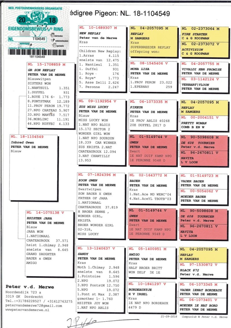 NL-18-1104549 - Peter van de Merwe, Inbred "Replay" i "Gwen" - Likwidacja hodowli