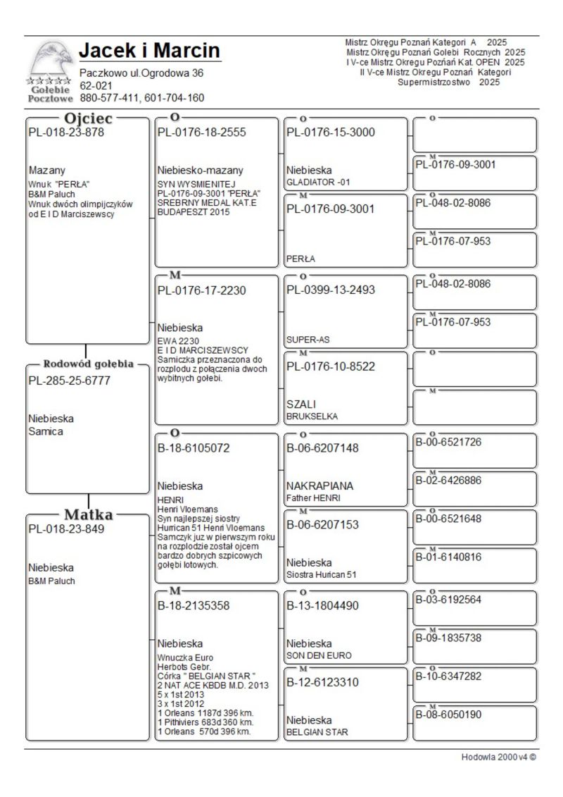 ryginalny Gołąb z hodowli Jacek.K-Marcin-M , Szczegóły pochodzenie w rodowodzie ,Niektóre wyniki z 2025 Mistrz oddziału 5/50,Mistrz oddziału 8 pierwszych z całośći,Mistrz oddziału 3 pierwsze według Coef, I V-ve Mistrz oddziału 5 pierwszych z 10 typowanych ,Mistrz oddziału kat A ,Mistrz oddziału kat B ,Mistrz oddziału kat roczne,Najlepszy lotnik roczny,Najlepsze lotniki oddziału 1,2,4,12,14,15,16,19,20,21,22,23,29,32,33itd I V-ce Mistrz Super mistrzostwo oddziału ,Mistrz okręgu Poznań kat A ,Mistrz okręgu Poznań kat Roczne,I V-ce mistrz okręgu Poznań kat open Dorosłe, II V-ce Mistrz Supermistrzostwo okręgu , odbiór osobisty lub kurier 150zł , kontakt 880-577-411