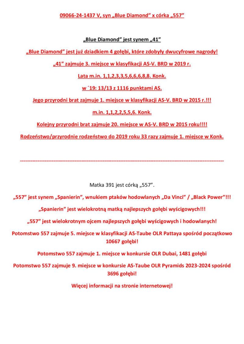 Samczyk oryg.Friedhelm Peitz z połączenia gołębi typowo pod WG m.in wnuk "Josefa"Frohlingsdorf x Hardy kruger z lini Black Power.Koszty wysyłki 150 zł(1-3 szt)
