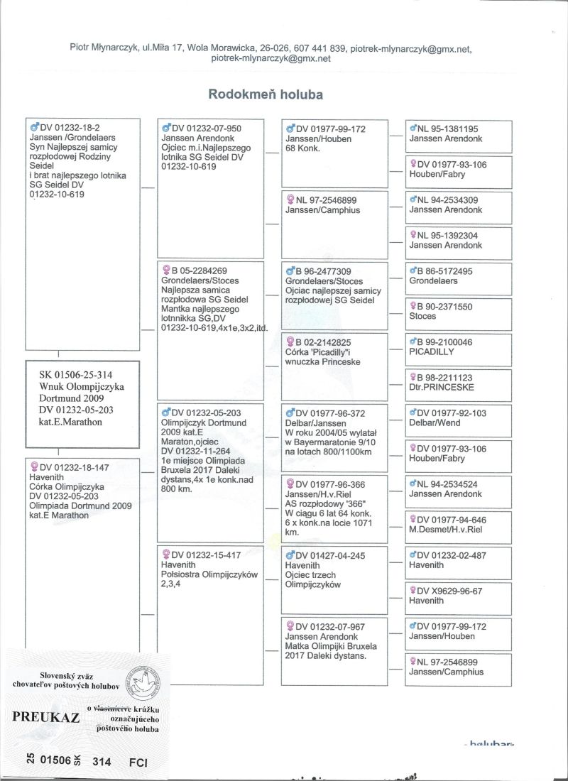 Havenith ,gołąb dalekodystansowy.Wnuk (wnuczka) najlepszej samicy rozpłodowej SG Seidel BE 05-2284269 i Olimpijczyka Dortmund 2009 kat.E Maraton DV 01232-05-205.Rodzina Seidel posiada siedmiu Olimpijczyków w kategorii daleki dystans, m.in. DV 01232-15-306 Olimpijka z Oradea 2022, pierwszy gołąb niemiec i 17 świata. Gołąbki zaszczepione msv i odrobaczone. Transport gołębi kurierem po wcześniejszym uzgodnieniu albo odbiór osobisty.