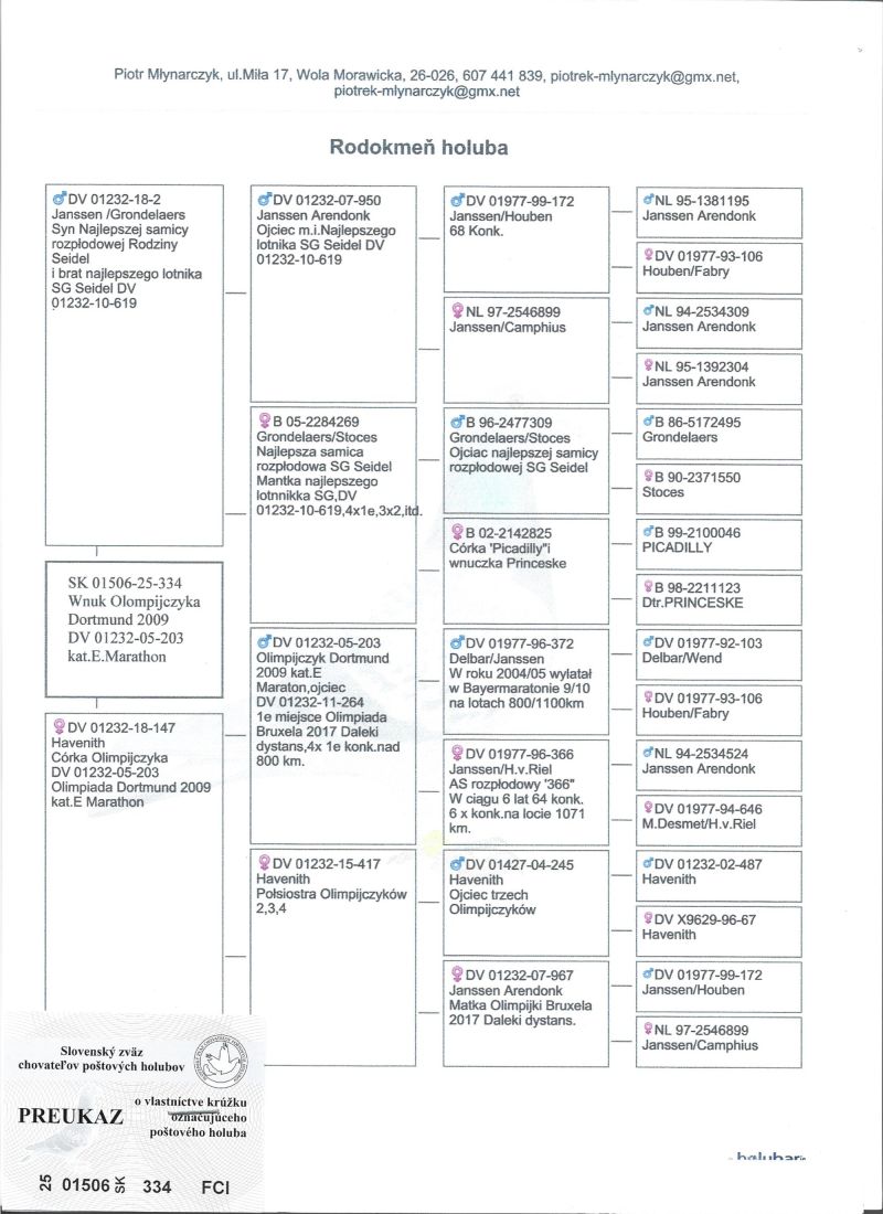 Havenith ,gołąb dalekodystansowy.Wnuk (wnuczka) najlepszej samicy rozpłodowej SG Seidel BE 05-2284269 i Olimpijczyka Dortmund 2009 kat.E Maraton DV 01232-05-205.Rodzina Seidel posiada siedmiu Olimpijczyków w kategorii daleki dystans, m.in. DV 01232-15-306 Olimpijka z Oradea 2022, pierwszy gołąb niemiec i 17 świata. Gołąbki zaszczepione msv i odrobaczone. Transport gołębi kurierem po wcześniejszym uzgodnieniu albo odbiór osobisty.