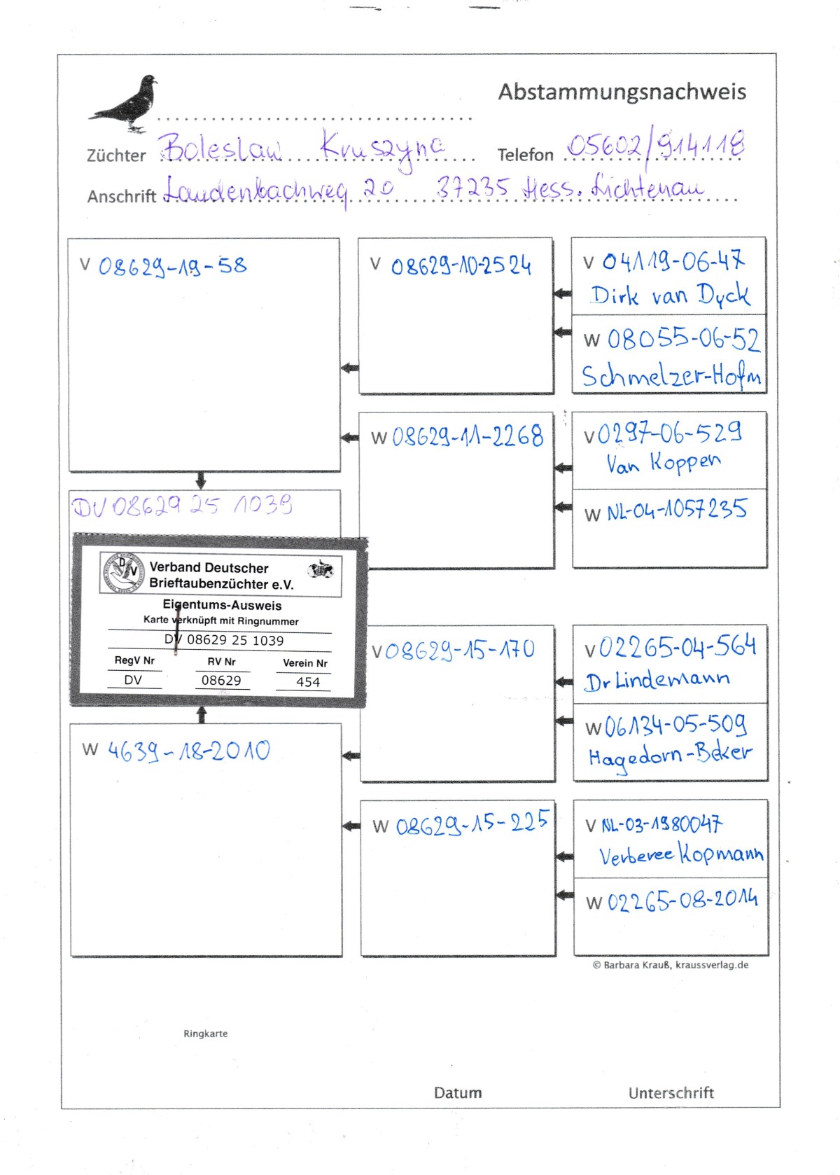 OLR German Classic 2025 Gołąb lotowany na wspólnym gołębniku OLR German Classic 2025, zaliczył cały program lotowy. Wyniki dostępne na stronie internetowej - www.german-classic-olr.de/. Gołąb znajduje się w Polsce, można go obejrzeć w miejscowości Zblewo (woj. pomorskie), po wcześniejszym kontakcie telefonicznym. Więcej informacji o gołębiu i transporcie pod nr tel.: 511 607 710.