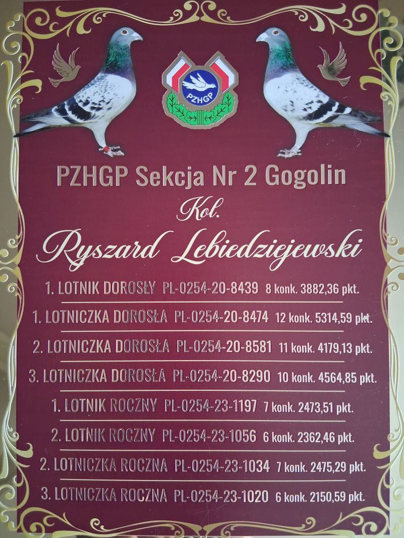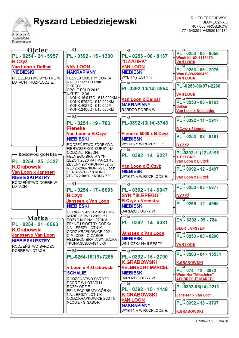 *prawdopodobnie samiec** Oryginalny gołąb z hodowli Ryszard Lebiedziejewskiego. Szczegóły pochodzenia w rodowodzie. Więcej informacji pod nr tel.: 530 152 182. **Gołębie po kuracjach przygotowane do sezonu. **Transport gołębi prywatnym kurierem 100 zł do 3 szt. od 4szt do 6szt 150zł.